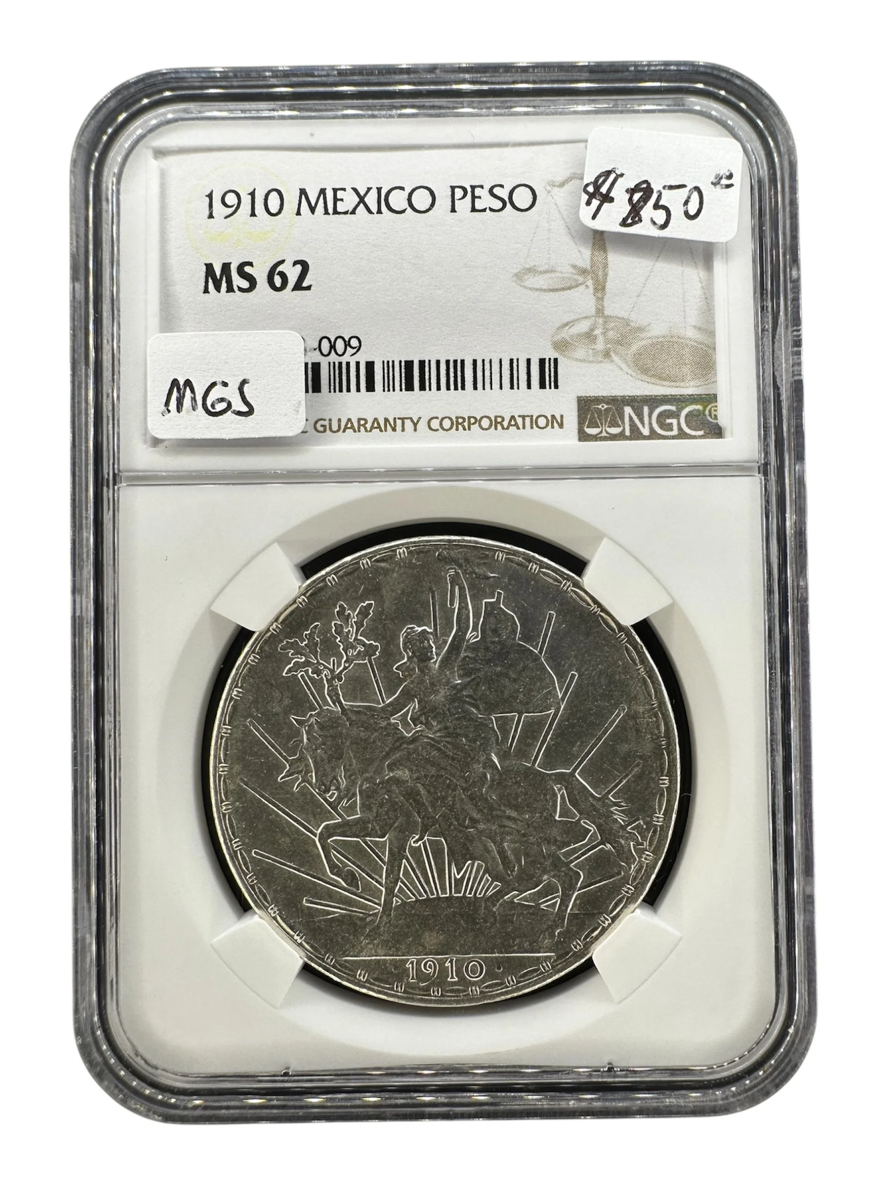 Store › 1910 Mexico Peso NGC MS62 Image 1 of 2 Image 2 of 2 1910 Mexico Peso NGC MS62 $850.00 sold out Conmemora el centenario del Grito de Dolores de Miguel Hidalgo, que dio inicio a la Guerra de Independencia de España. Sold Out Added! Conmemora el centenario del Grito de Dolores de Miguel Hidalgo, que dio inicio a la Guerra de Independencia de España.