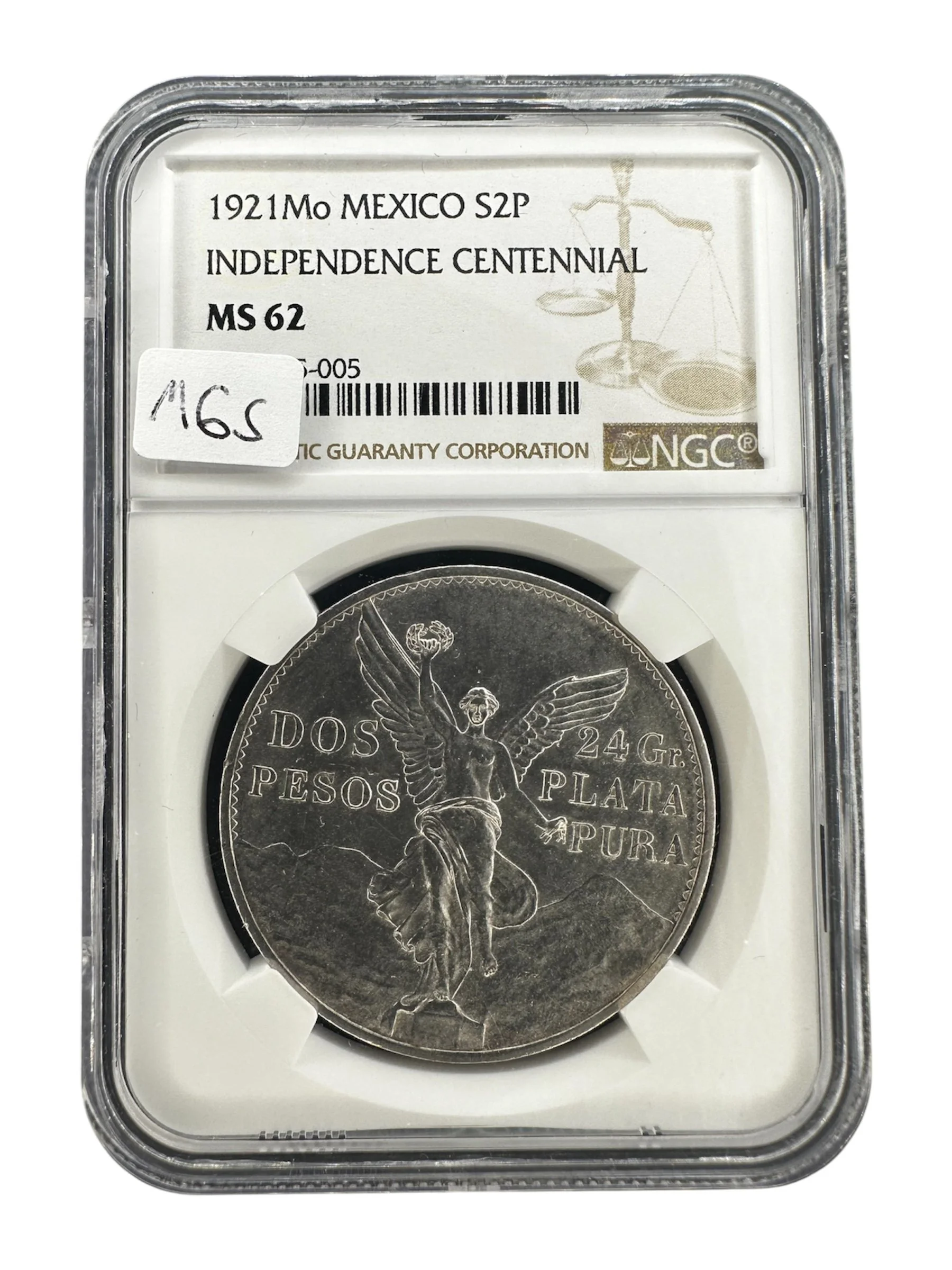 Store › 1921 2 Pesos NGC MS62 Image 1 of 2 Image 2 of 2 1921 2 Pesos NGC MS62 $900.00 sold out Year: 1921 Value: 2 Pesos Composition: Silver (.900) Weight: 26.667g Diameter: 39mmMintage: 1,277,500 Sold Out Added! Year: 1921 Value: 2 Pesos Composition: Silver (.900) Weight: 26.667g Diameter: 39mmMintage: 1,277,500