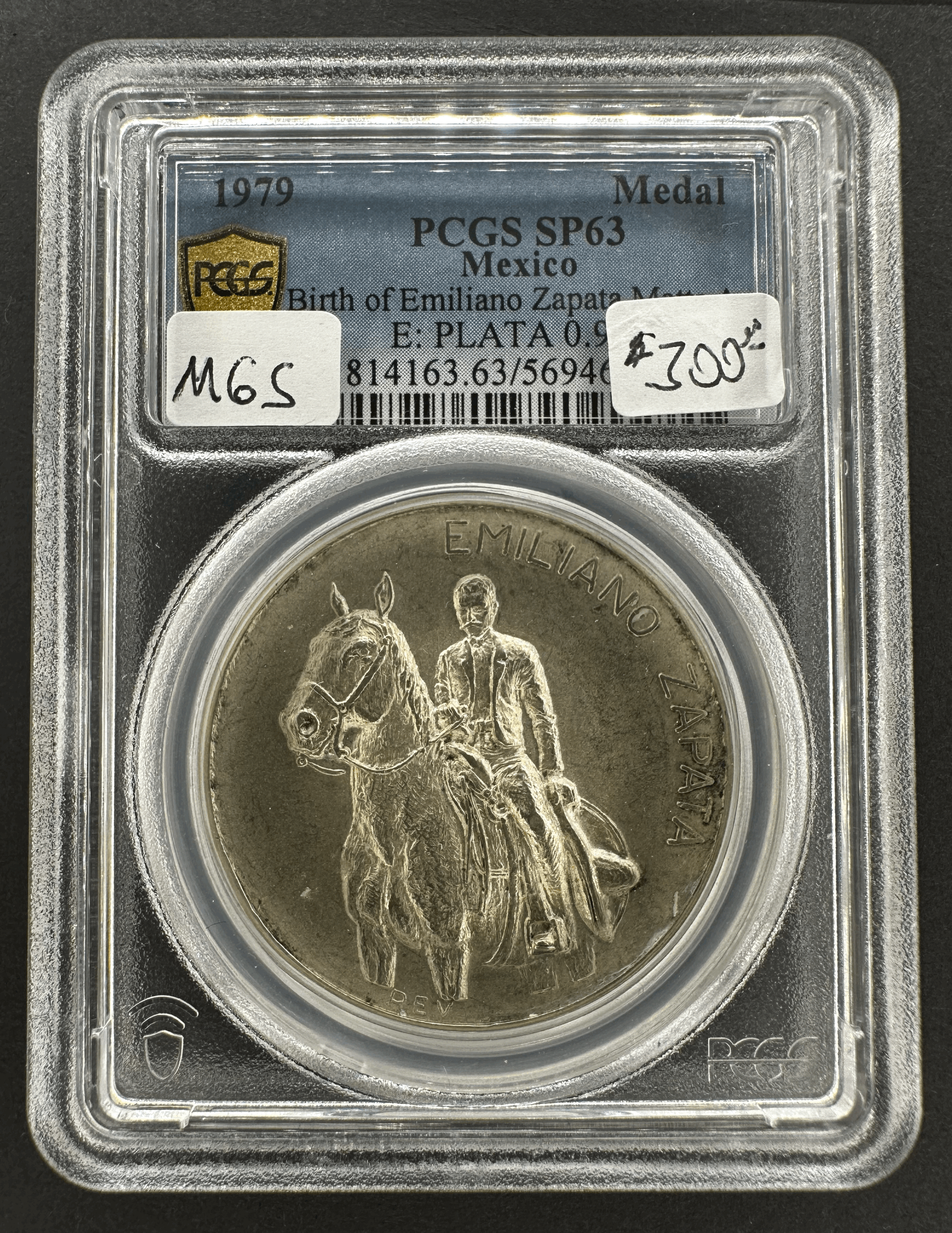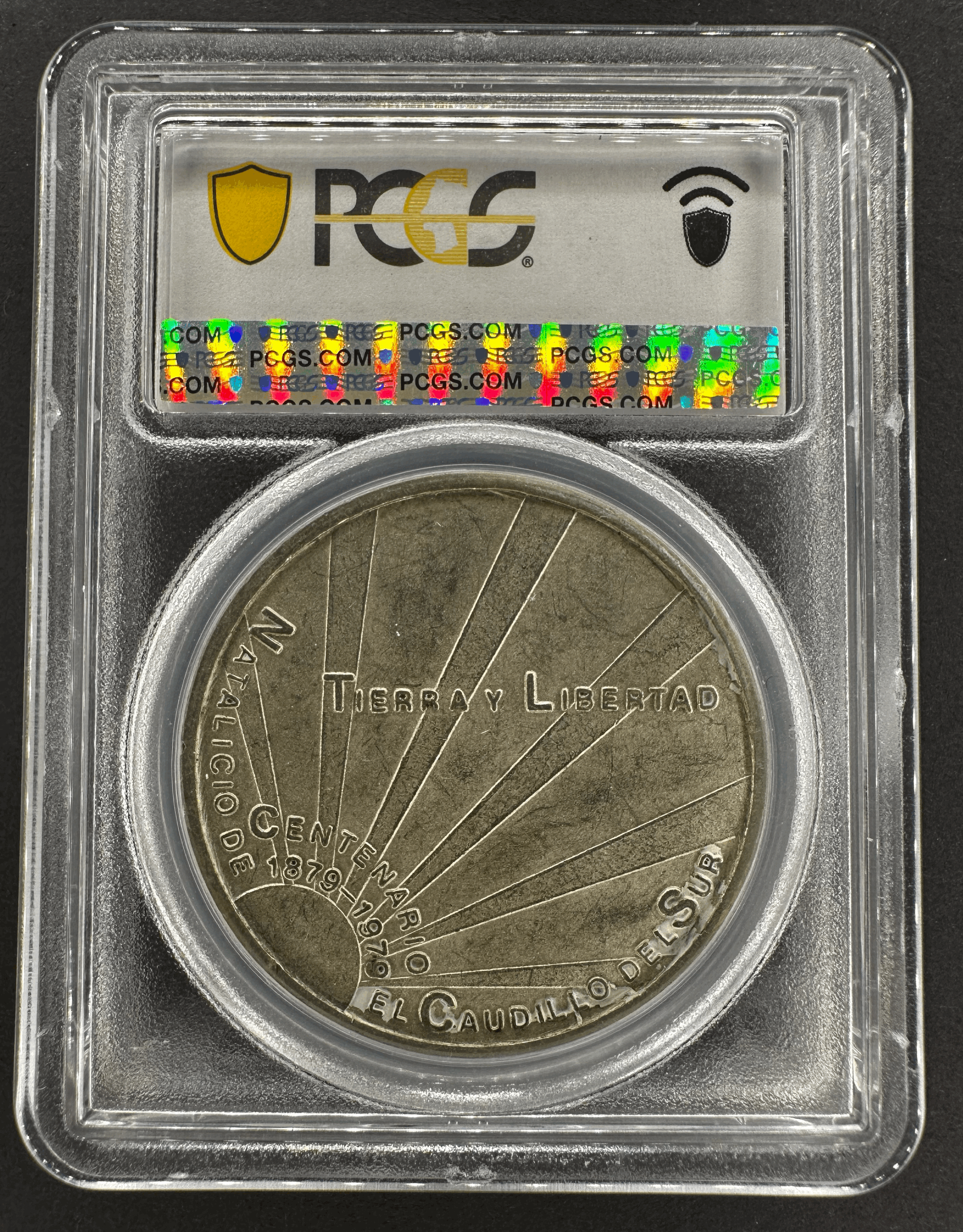 Rare 1979 Mexico Emiliano Zapata 100th Anniversary coin featuring the theme of Tierra y Libertad. This uncirculated silver coin has a fineness of 0.9 and has been graded as SP63 by PCGS. The coin was minted in Mexico and is a valuable collectible for those interested in Mexican history and numismatics