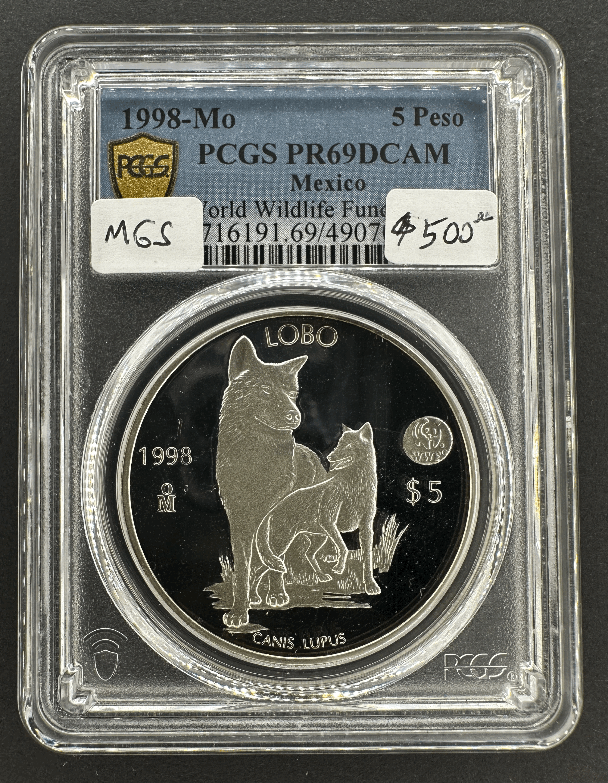 Store › 1998-Mo 5 PESOS MEXICO LOBO Image 1 of 1 1998-Mo 5 PESOS MEXICO LOBO $500.00 sold out 1998-Mo 5 PESOS MEXICO LOBO WORLD WILDLIFE FUND PCGS PR69DCAM Sold Out Added! 1998-Mo 5 PESOS MEXICO LOBO WORLD WILDLIFE FUND PCGS PR69DCAM