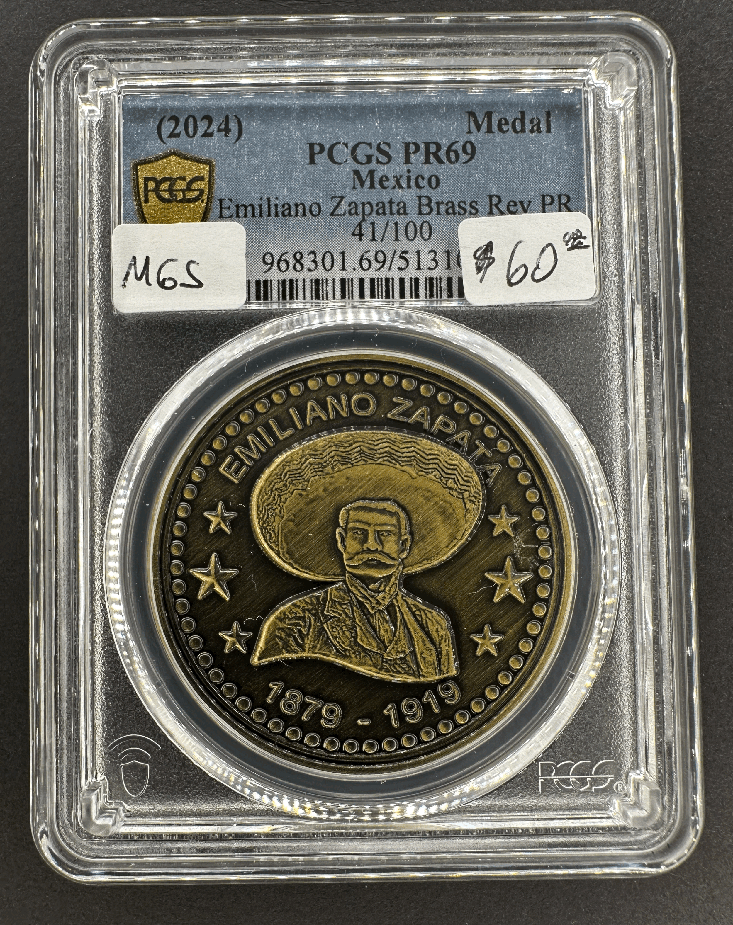 Store › 2024 Emiliano Zapata Brass Medal Image 1 of 2 Image 2 of 2 2024 Emiliano Zapata Brass Medal $60.00 sold out 2024 Emiliano Zapata Brass Medal. PCGS PR69. Only 100 Minted Sold Out Added! 2024 Emiliano Zapata Brass Medal. PCGS PR69. Only 100 Minted