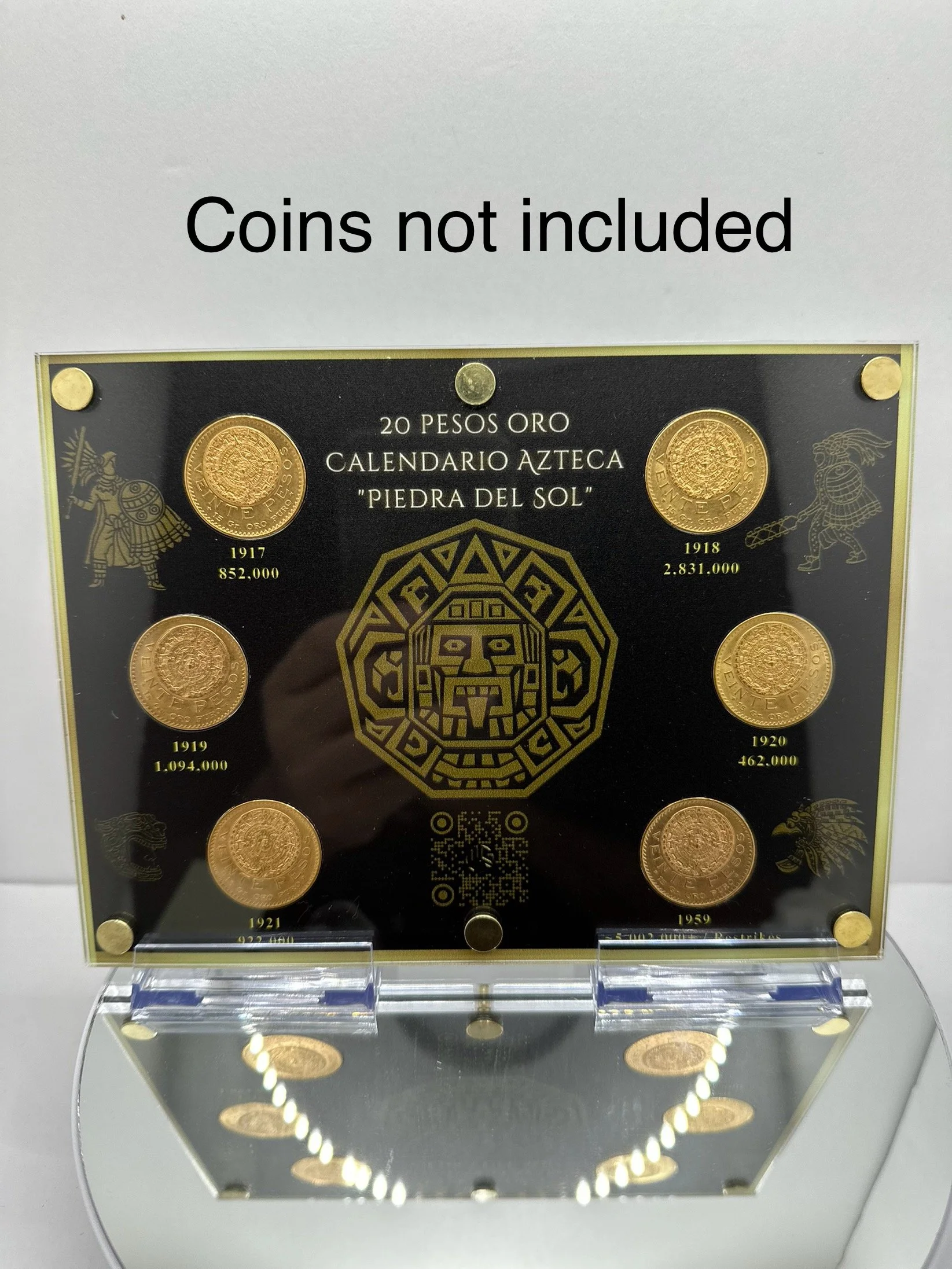 Acrílico de alta calidad para 20 Pesos oro ofrece gran claridad, protección UV y resistencia a rayaduras. Conserva las piezas mientras las exhibe elegantemente. Es duradero, ligero y no se amarillea con el tiempo.